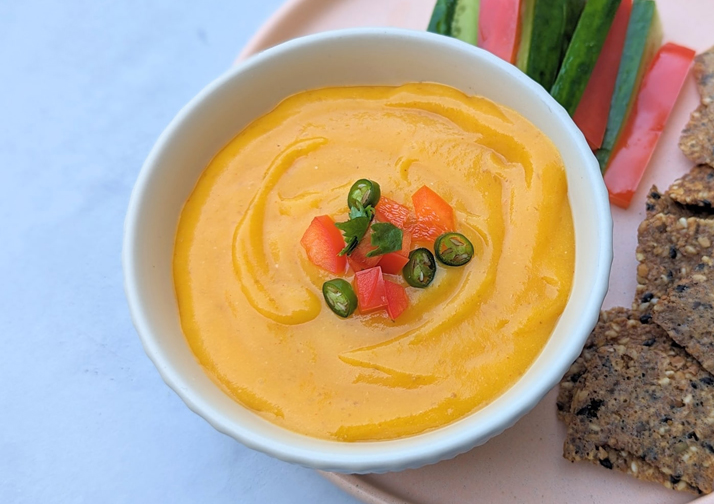 Steam potatoes and carrots for 7-8 minutes in a steamer, until they are completely cooked. Cool and transfer to a grinder jar. Add the rest of the ingredients and grind to a smooth paste. This cheese may be served as a dip with vegetable sticks or corn crackers, or you could put dollops of it on a bed of finely shredded vegetables.