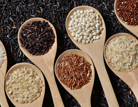 for whole grains like brown rice, red rice, millets, or whole wheat. The fibre fills you up, reduces consumption and slims you down