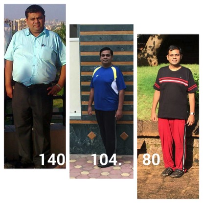 “From that day onwards, my life has taken a drastic change for the better. My weight that time was 140 kgs, BP 150/110 and HbA1c was 9.6. Following the instructions given in the program I shifted to total whole food plant-based diet and lost 5 kgs every month which continued for one year consistently. So, I lost a total of 60 kgs in one year and my weight came down from 140 kg to 80 kg as shown in the photograph. During the program I had asked Reyna whether cooking without oil was possible and when she said yes, it was news to my ears. Subsequently Suraj who cooks for me attended the oil-free classes.